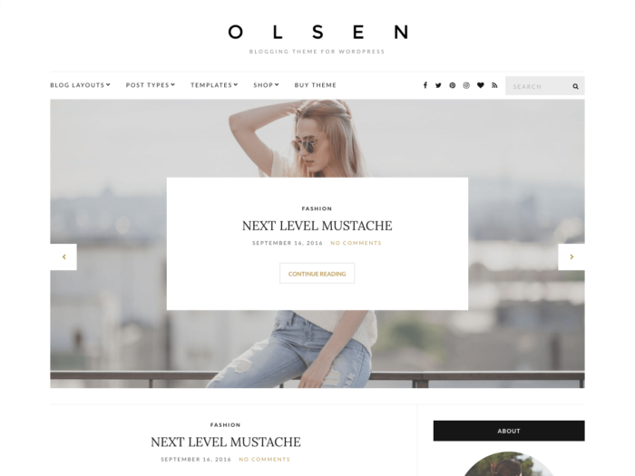 Daha çok moda ve yaşam tarzı blogları için tasarlanmış Olsen teması özelleştirilebilir bir yapıya sahip ve SEO için optimize edilmiş bir WordPress temasıdır.